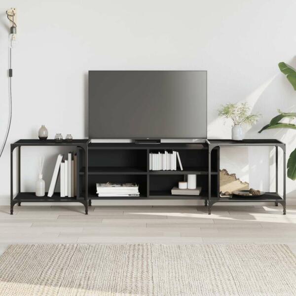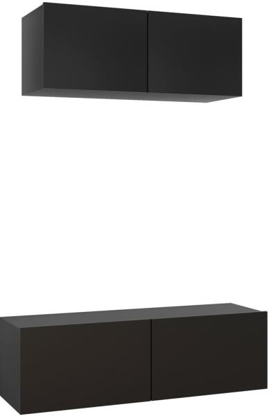 vidaXL 2 részes fekete forgácslap TV-szekrényszett A különféle tárgyak elrendezésére alkalmas, bőséges tárolókapacitással ellátott függő TV-szekrényszett biztosan praktikus és szemet gyönyörködtető kiegészítője lesz otthonának. A TV-szekrény falra szerelhető, így otthona időtlen kiegészítője lesz. Ez a hifi-szekrényszett ideális olyan tárgyak elhelyezésére va