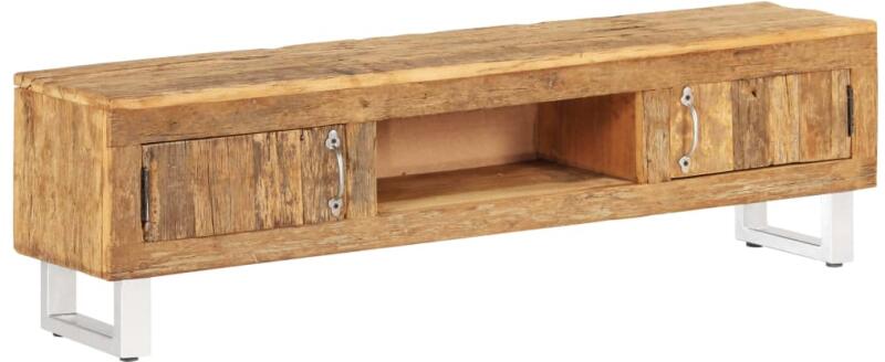 Ez a retró stílusú TV-állvány garantáltan nappalija vagy pihenőszobája fénypontja lesz. Ez a TV-szekrény kézzel készült tömör újrahasznosított fából. A fa nyers megjelenése és a kézműves munka kiemeli a szekrény látványos retró stílusát. A készítési folyamat minden lépése a legnagyobb gondossággal történt, legyen szó akár a polírozásról, akár a festésrő