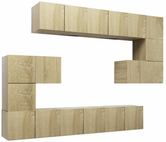 vidaXL 10 részes sonoma-tölgyszínű forgácslap TV-szekrényszett Ez a modern kivitelezésű, tágas tárolórésszel rendelkező TV-szekrényszett nappalija középpontja lesz. Ez a függő TV-szekrényszett forgácslapból készült, így erős és tartós. A falra szerelhető szekrényszett időtálló kiegészítője lesz otthonának. A garnitúra számos rekesszel rendelkezik, melyek nagys