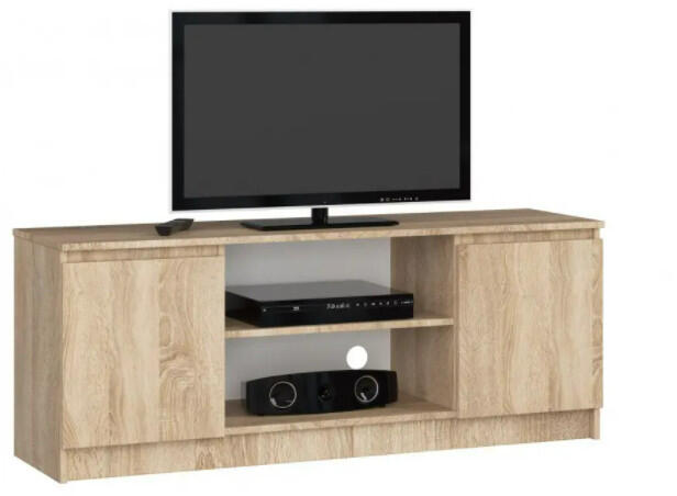 140 cm széles TV szekrény, kombinált változatban 2 ajtóval és középső polcokkal, ami tökéletes tároló egység a kiegészítő műszaki berendezéseknek. Méreteit a piacon található legnépszerűbb set -top boxokhoz, konzolokhoz és audioberendezésekhez igazították. A modern minimalista stílust tovább erősítik a fogantyú nélküli előlapok. A szekrény kiváló minőségű,