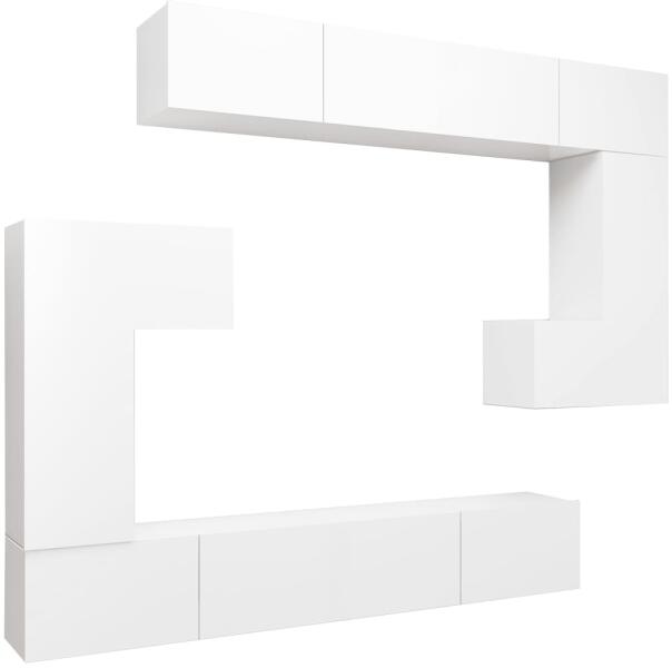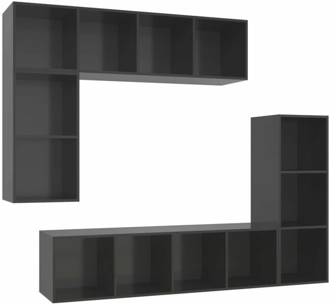 vidaXL 4 részes magasfényű szürke forgácslap TV-szekrény szett A különféle tárgyak elrendezésére alkalmas, bőséges tárolókapacitással ellátott függő TV-szekrényszett biztosan praktikus és szemet gyönyörködtető kiegészítője lesz otthonának. A TV-szekrény falra szerelhető, így otthona időtlen kiegészítője lesz. Ez a hifi-szekrényszett ideális olyan tárgyak elh