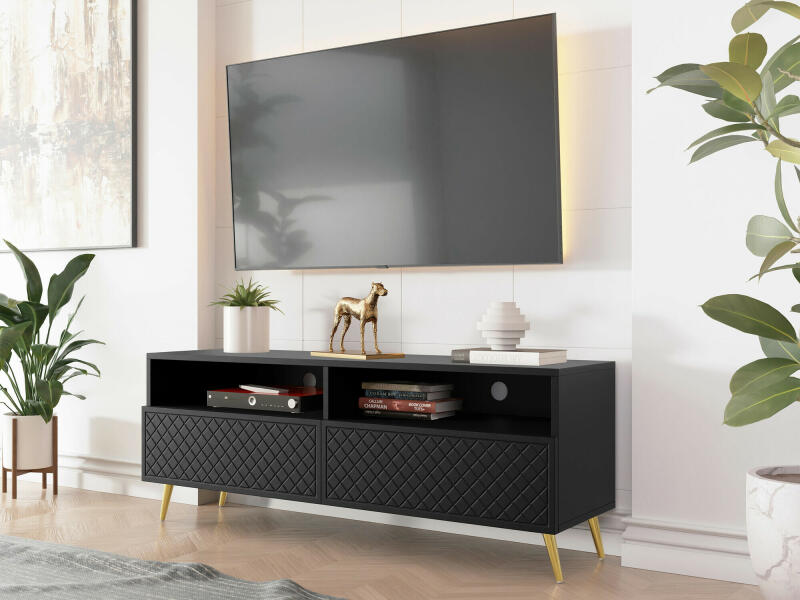 Ez a masszív TV-szekrény divatos, mégis praktikus kialakításával garantáltan szobája gyöngyszeme lesz. Masszív anyag: A szerelt fa kivételes minőségű, sima felületű, szilárd, stabil, és ellenáll a nedvességnek. A szerelt fából készült TV-szekrény könnyen tisztítható. Tágas tárolóhely: A TV-egység 3 rekesszel és 3 fiókkal rendelkezik, így ideális magazinok, DVD-k