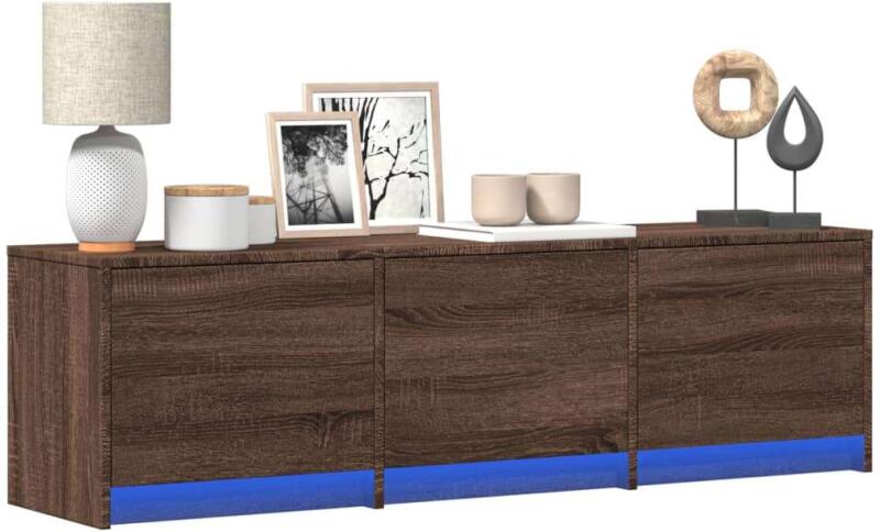 vidaXL barna tölgy színű szerelt fa LED-es TV-szekrény 140x34x40 cm Ez a stílusos, mégis praktikus kialakítású LED lámpákkal ellátott TV-szekrény minden bizonnyal szobája középpontjává fog válni. Hosszú élettartamú anyag: A szerelt fa kivételes minőségű, sima felületű, szilárd, stabil, és ellenáll a nedvességnek. RGB LED-világítás a kellemes környezet érdekébe