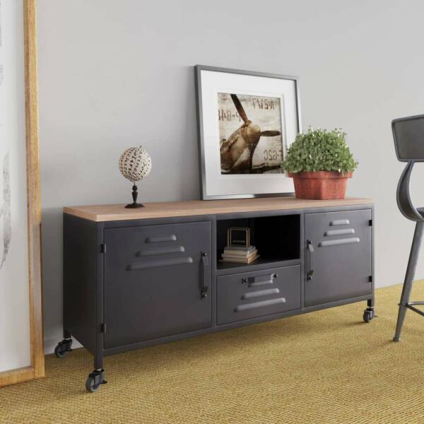vidaXL fekete vas és tömör fenyőfa TV-szekrény 110 x 30 x 43 cm Ez a TV-szekrény garantáltan nappalija vagy hálószobája gyöngyszeme lesz. Prémium minőségű anyag: A TV-egység vasból és tömör fenyőfából készült, így rendkívül stabil és tartós. Bőséges tárolóhely: A TV-állvány 1 fiókkal, 1 polccal és 2 rekesszel rendelkezik a DVD-lejátszók, játékkonzolok, str
