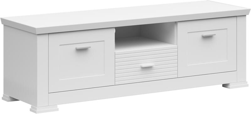 Anyag: laminált DTD/MDFSzínkivitel: fehérMéretek (SzéxMéxMa): 148x45x48 cmNyitott polc (SzéxMéxMa): 41,7x39x17,2 cmAnyagvastagság: 1,6 cmFogantyúkkalEgy fiókkalKét szekrényNyitott polcRomantikus, skandináv stílusMinőségi kivitelezésFiók teherbírása: 5 kgBontásban szállítva