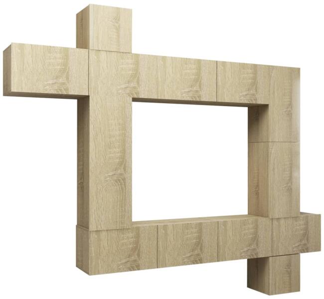 vidaXL 9 részes sonoma-tölgyszínű forgácslap TV-szekrényszett Ez a modern kivitelezésű, tágas tárolórésszel rendelkező TV-szekrényszett nappalija középpontja lesz. Ez a függő TV-szekrényszett forgácslapból készült, így erős és tartós. A falra szerelhető szekrényszett időtálló kiegészítője lesz otthonának. A garnitúra számos rekesszel rendelkezik, melyek nagysz