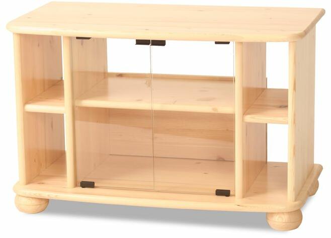 Tömör Fenyő TV állvány kicsi Nem lapra szerelt. Az ívelt design és az üveges ajtók elegánsan ötvözik a klasszikus stílus jellegzetességeit. Ez a TV-állvány különösen ajánlott olyan helyekre, mint panziók, hétvégi házak, ahol az eredeti fenyőbútorok iránti szeretet dominál.