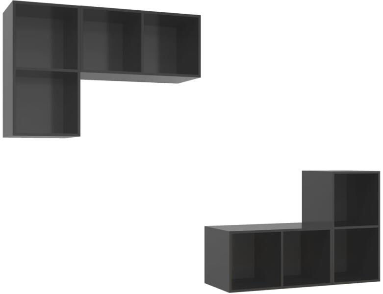 vidaXL 4 db magasfényű szürke forgácslap fali TV-szekrény A különféle tárgyak elrendezésére alkalmas, bőséges tárolókapacitással ellátott falra szerelhető TV-szekrény szett biztosan praktikus és szemet gyönyörködtető kiegészítője lesz otthonának. Ezek a TV-állványok függőlegesen vagy akár vízszintesen is a falra szerelhetők, az Ön igényeinek megfelelően. Mindk