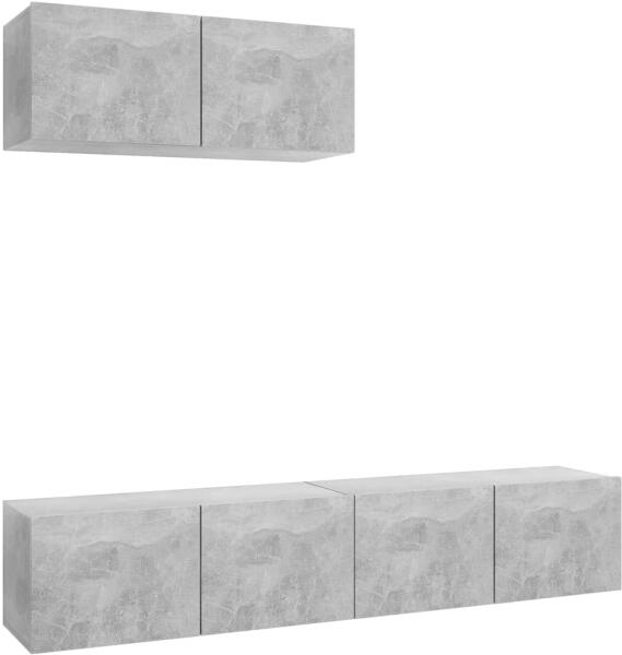 vidaXL4 db betonszürke szerelt fa fali TV-szekrény 80 x 30 x 30 cm Ezek a TV-szekrények elegáns és klasszikus kialakításúak. Könnyen a falra rögzíthetők, így otthona dekoratív és praktikus kiegészítői lesznek. Masszív szerelt fa: A szerelt fa kivételes minőségű, sima felületű, szilárd, stabil, és ellenáll a nedvességnek. Bőséges tárolóhely: Minden TV-állvány 2 re