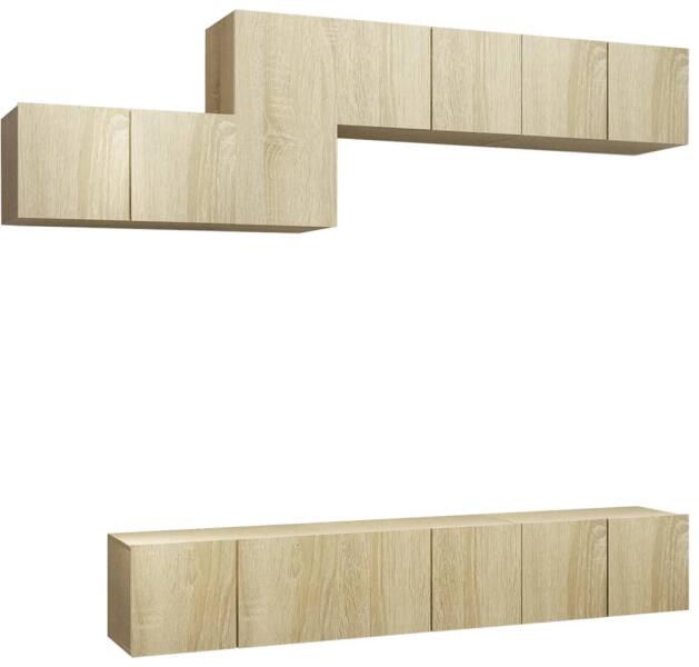 vidaXL 7 részes sonoma-tölgyszínű forgácslap TV-szekrényszett Ez a modern kivitelezésű, tágas tárolórésszel rendelkező TV-szekrényszett nappalija középpontja lesz. Ez a függő TV-szekrényszett forgácslapból készült, így erős és tartós. A falra szerelhető szekrényszett időtálló kiegészítője lesz otthonának. A garnitúra számos rekesszel rendelkezik, melyek nagysz