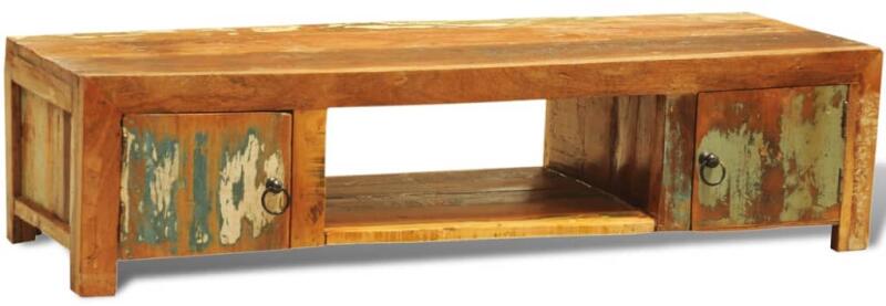 Az antik stílusú újrahasznosított fából készült TV-szekrény stílusos és praktikus is egyben a fiókjaival és polcaival. Nagyszerű kiegészítője lehet a nappali vagy hálószobájának. Ez a TV-szekrény újrahasznosított fából készült, aminek köszönhetően minden darab egyedi, és kissé különbözik egymástól. Az újrahasznosított fából készült bútorok magukon visel