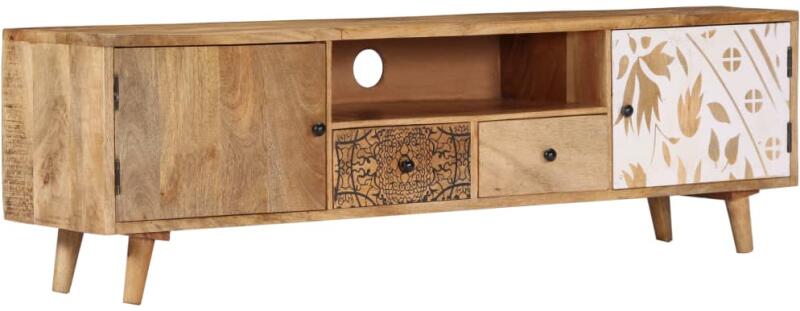 vidaXL tömör mangófa TV-szekrény 140 x 30 x 40 cm Ez a fából készült TV-szekrény otthona szemet gyönyörködtető kiegészítője lesz. A HiFi-szekrény tömör mangófából, egy sűrű erezetű keményfából készült. A nyers mangófa nemcsak a ránehezedő súlyt bírja el, de időtálló is. Ez a gyönyörű kialakítású szekrény stabil, tartós és szemet gyönyörködtető. Ez