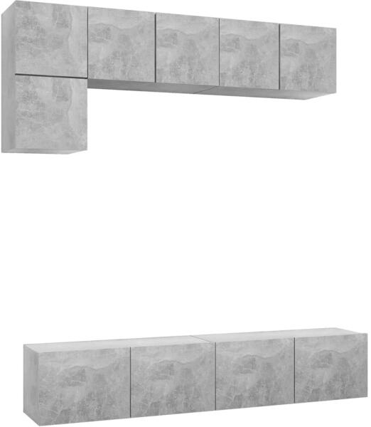 vidaXL 6 részes betonszürke szerelt fa TV-szekrényszett Ez a klasszikus TV-szekrényszett divatos és praktikus kialakításával garantáltan a szoba gyöngyszeme lesz. Masszív anyag: A szerelt fa kivételes minőségű, sima felületű, szilárd, stabil, és ellenáll a nedvességnek. Ezek a szerelt fából készült TV-állványok könnyen tisztíthatók. Bőséges tárolóhely: A TV-állv