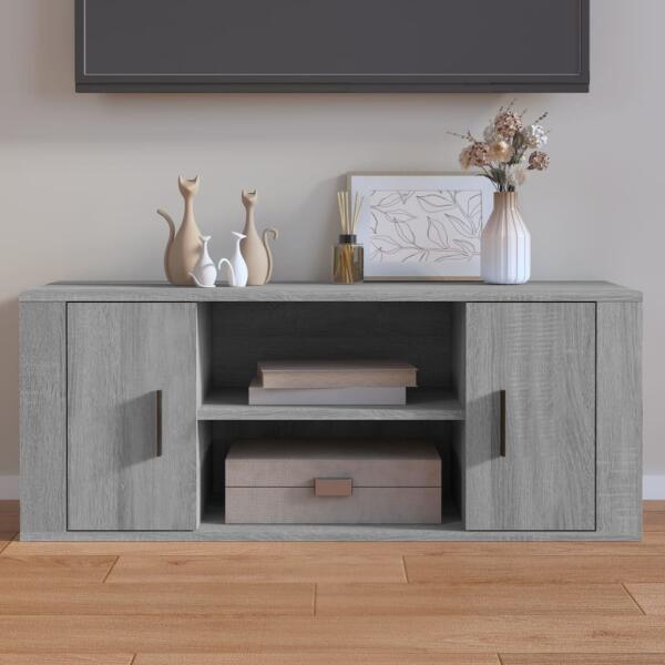 vidaXL szürke sonoma színű szerelt fa TV-szekrény 100 x 35 x 40 cm Ez a masszív TV-szekrény divatos, mégis praktikus kialakításával garantáltan szobája gyöngyszeme lesz. Masszív anyag: A szerelt fa kivételes minőségű, sima felületű, szilárd, stabil, és ellenáll a nedvességnek. A szerelt fából készült TV-szekrény könnyen tisztítható. Tágas tárolóhely: A TV-egység