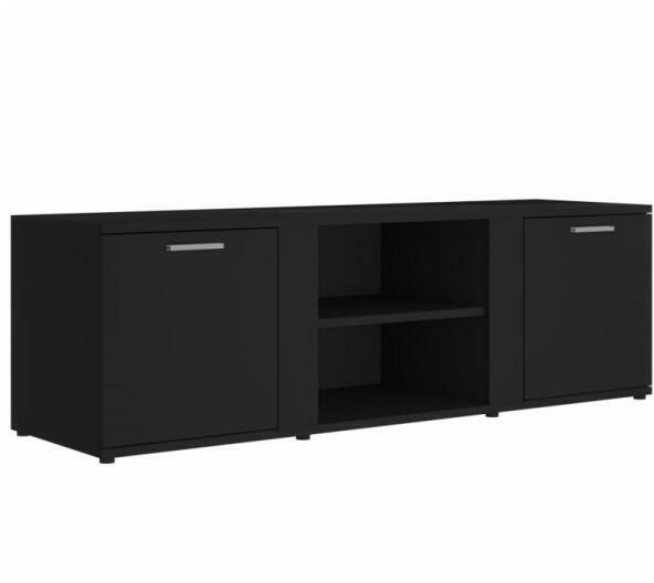 vidaXL fekete forgácslap TV-szekrény 120 x 34 x 37 cm A stílusos, mégis praktikus kialakítású strapabíró TV-szekrény egészen biztosan szobája középpontjává fog válni. Ez a minőségi forgácslapból készült, klasszikus stílusú TV-szekrény időtálló kiegészítője lesz otthonának. Két ajtaja és két nyitott tárolórekesze bőséges tárolóhelyet kínál apróságok, mu