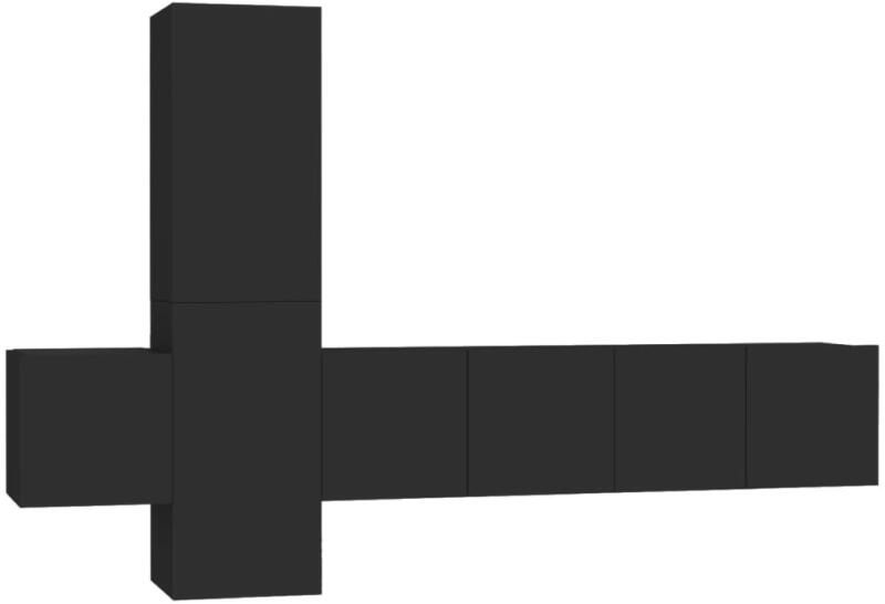 vidaXL 5 részes fekete forgácslap TV-szekrényszett Ez a masszív TV-szekrényszett divatos, mégis praktikus kialakításával garantáltan szobája gyöngyszeme lesz. A TV-állvány a falra rögzíthető, így időtlen kiegészítője lesz otthonának. Széles tárolórekeszei ideálisak könyvek, magazinok, DVD-k és egyéb tárgyak tárolásához. A sztereószekrény nedves ruhával könnyen