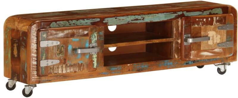Ez az antik stílusú fa TV-szekrény nagyszerű darabja lesz otthonának. Ez a hifi-szekrény tömör újrahasznosított fából készült, amit a régi lebontott épületek gerendáiból, padlóiból és tartógerendáiból állítottak össze. Ezenkívül mintájában különféle fafajták jellemzői fedezhetőek fel, megtartva ezen fafajok, pl. : a fenyőfa, tíkfa, bükkfa, tölgyfa, mangóf