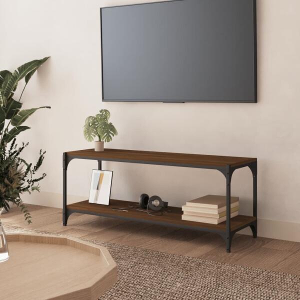 Füstös tölgyszínű szerelt fa TV-szekrény 100 x 35 x 40 cm Ez a masszív TV-szekrény divatos, mégis praktikus kialakításával garantáltan szobája gyöngyszeme lesz. Masszív anyag: A szerelt fa kivételes minőségű, sima felületű, szilárd, stabil, és ellenáll a nedvességnek. A szerelt fából készült TV-szekrény könnyen tisztítható. Tágas tárolóhely: A TV-egység 4 reke