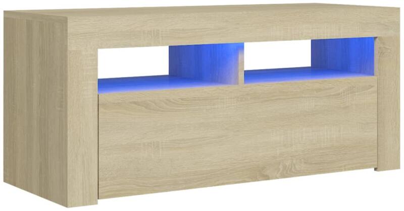 vidaXL sonoma-tölgy színű TV-szekrény LED-világítással 90 x 35 x 40 cm Ez a stílusos, mégis praktikus kialakítású LED lámpákkal ellátott TV-szekrény minden bizonnyal szobája középpontjává fog válni. A HiFi szekrény stabil felépítése rendkívül strapabíróvá teszi. Rengeteg hely marad a DVD-lejátszó, a játékkonzol, a streaming eszközök és az adathordozók számá