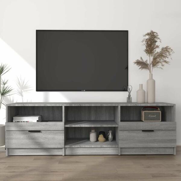 vidaXL szürke sonoma színű szerelt fa TV-szekrény 150 x 33,5 x 45 cm A divatos TV-szekrény praktikus és ideális kiegészítő egy vonzó és modern belső tér kialakításához. Prémium minőségű anyag: A szerelt fa kivételes minőségű, sima felületű, szilárd, stabil és ellenáll a nedvességnek. Bőséges tárolóhely: A sztereószekrény fiókokkal és polcokkal rendelkezik a D