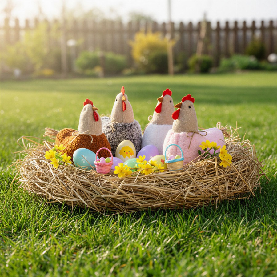 Textil dekoráció - tyúkanyó - 21 x 18 x 11 cm - 4 féle Ez a bájos textil tyúkanyó dekoráció tökéletes választás otthona díszítésére, különösen húsvéti időszakban vagy vidéki hangulat megteremtéséhez. Puha textil anyagból készült, természetes színvilágával és aprólékosan kidolgozott részleteivel barátságos, meghitt atmoszférát teremt a nappaliban, konyhába