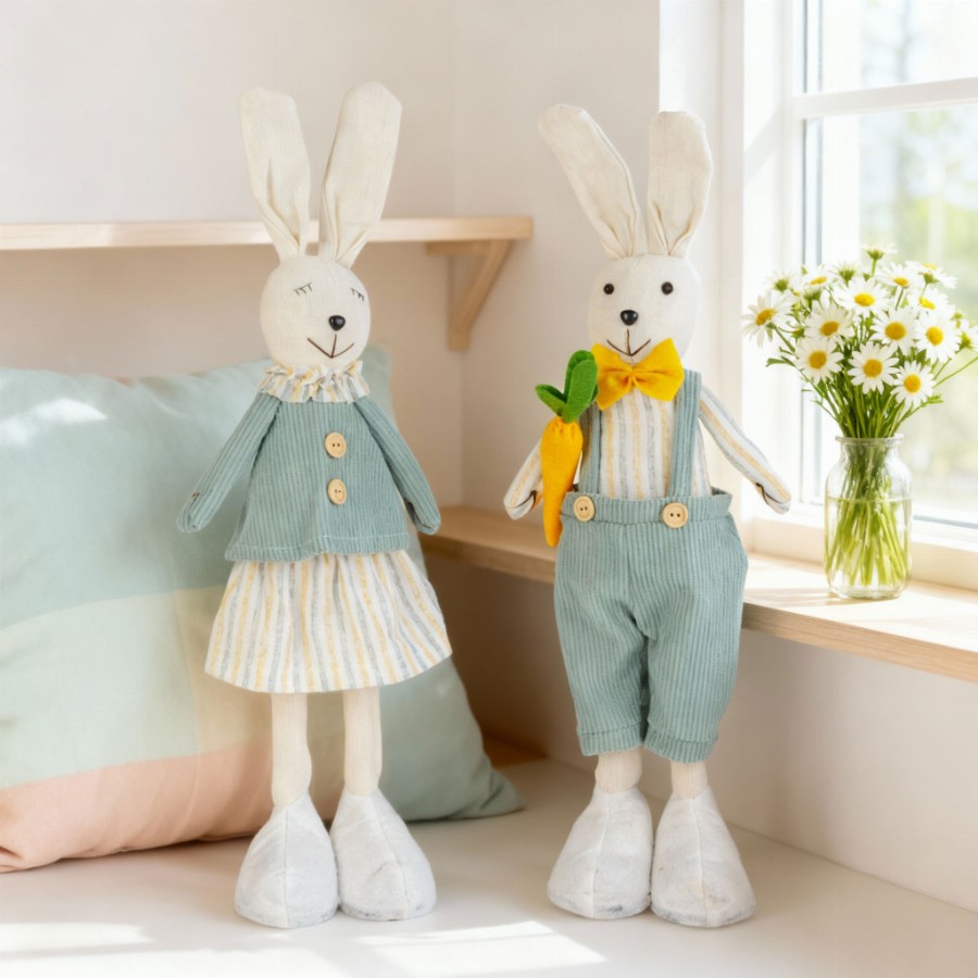 Textil dekoráció - nyuszi - 50 x 17 x 8 cm - 2 féle Ez a bájos textil nyuszi dekoráció tökéletes választás húsvéti és tavaszi díszítéshez, de az év bármely időszakában otthonos és vidám hangulatot teremt. Puha textil anyagból készült, kedves megjelenésével igazán különleges dekorációs eszköz. A nyuszi kétféle változatban kapható, így kiválaszthatja az Ön sz