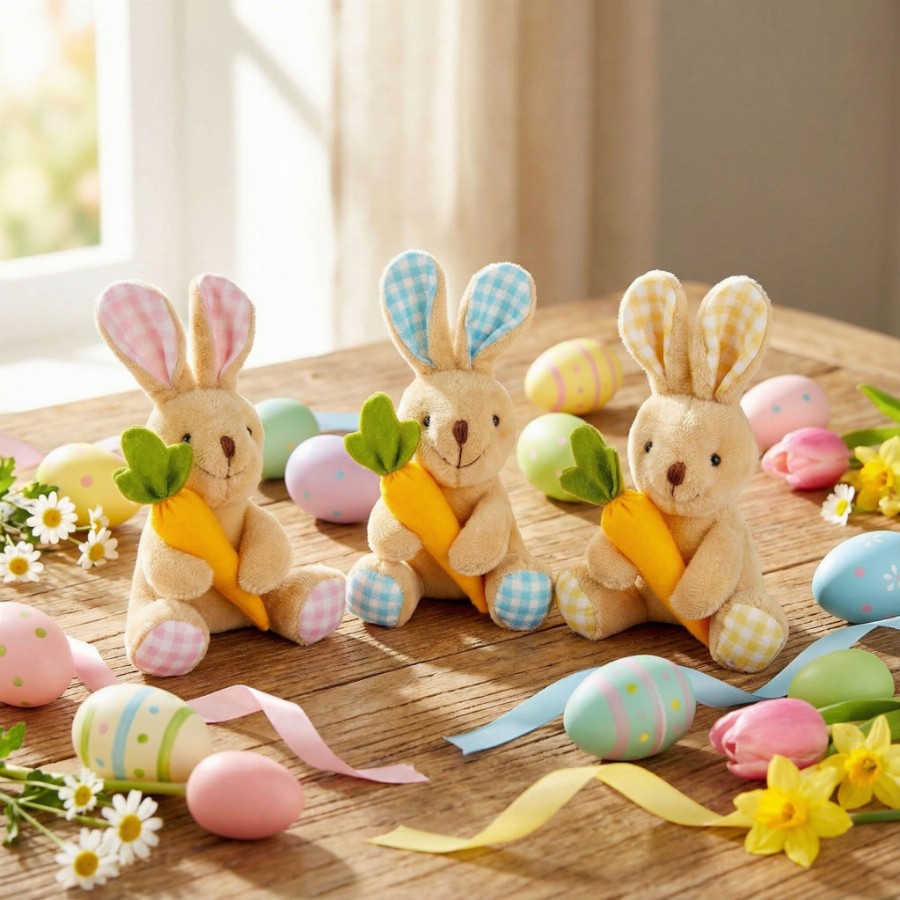 Textil dekoráció - nyuszi - 15 cm - 3 féle Vidám húsvéti hangulatot varázsolhat otthonába ezzel a bájos textil nyuszival! A puha plüss anyagból készült figura aranyos kialakításával és kedves részleteivel garantáltan mosolyt csal az arcokra. A 15 cm-es méretének köszönhetően tökéletes dekorációs elem lehet asztalon, polcon, ágyon vagy akár ajándékként is. A nyuszi