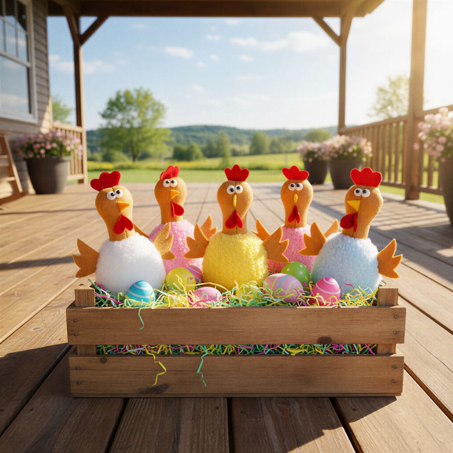 Textil dekoráció - csirke - 23 cm - 5 féle Ez a vicces, textil csirke dekoráció tökéletes választás otthona, irodája vidámságának megteremtésére, díszítésére, különösen húsvéti időszakban. A részletgazdag kidolgozás, a bolyhos test és a vidám, mókás arckifejezések garantáltan mosolyt csalnak az arcokra. Tökéletesek asztaldíszként, polcra helyezve vagy ajándék