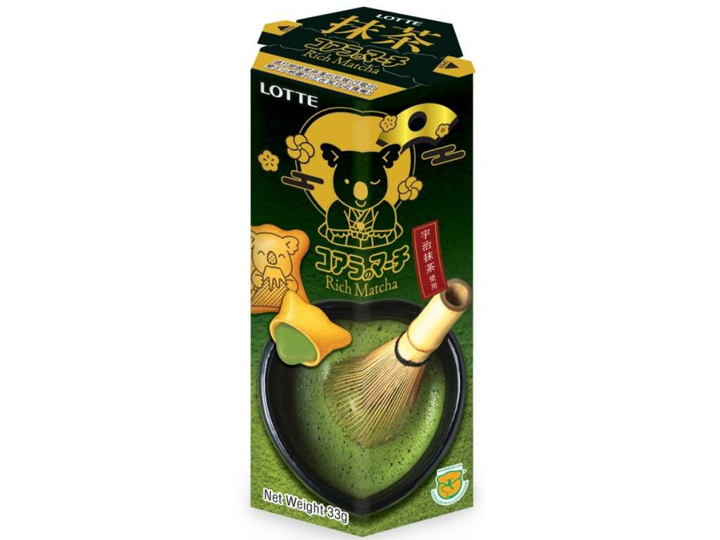 Lotte Koalas March Rich Matcha ízű krémmel töltött keksz Töltőtömeg: 33g Összetevők: tejszín (hidrogénezett pálmamag olaj, pálmaolaj, pálmamag olaj, hidrogénezett repceolaj, cukor, laktóz, tejsavópor, sovány tejpor, emulgeálószer (E322 - szója), búzaliszt, kukoricakeményítő, zsiradékok (finomított pálmaolaj, finomított pálmasztearin, finomított pálmamagolaj, emulge
