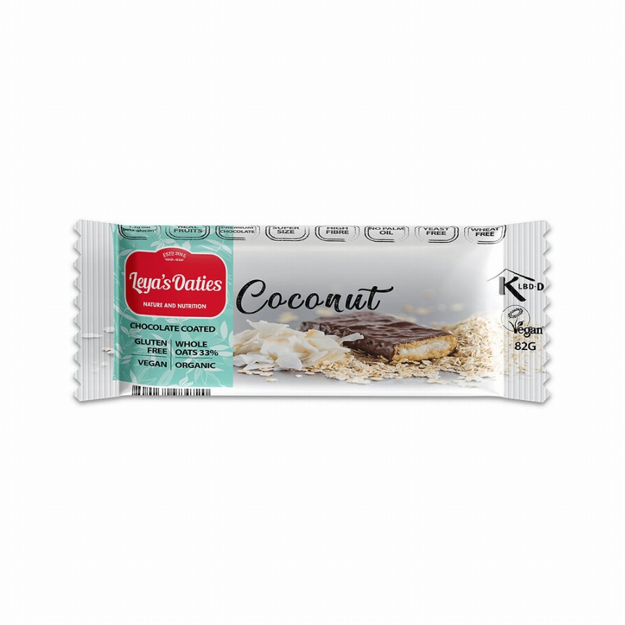 Bio étcsokoládés zabszelet kókusszal Összetevők: Gluténmentes zab* 34,5%, agavészirup*, datolya*, étcsokoládé* 13% (kakaómassza 64%, nyers nádcukor 28,6%, kakaóvaj 7%, emulgeálószer: szójalecitin 0,4%, vaníliakivonat 0,03%), kókuszpehely* 12,5%, kakaóvaj*, Himalája só, vaníliaaroma*. *organikus gazdálkodásból. Nyomokban földimogyorót, dióféléket, tejet és szezámmag