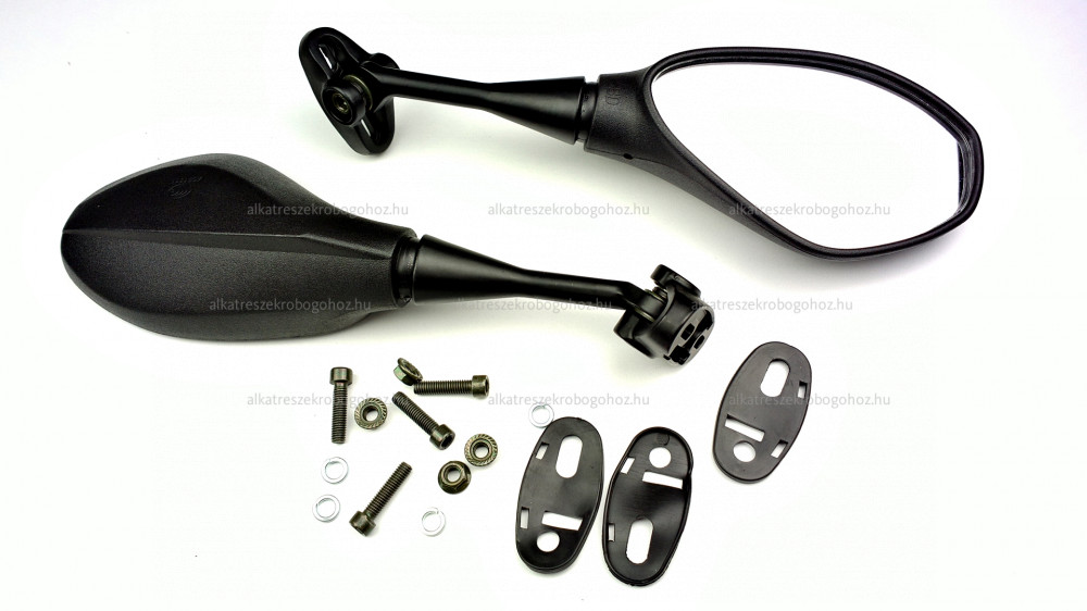 Tükör teljes hossza a szárával együtt 290mm Tükörlap mérete a legszélesebb pontoknál mérve 156mm x 80mm Szár hossza: 125mm Menetméret: M6x1 Menet iránya: jobbos + jobbos (mindkét tükör csavarjainak a befogatása az óra járásával megegyező irányba történik) Típus: Univerzális visszapillantó tükör Anyag: Műanyag ház, fém tükörszár Az ár párban értendő