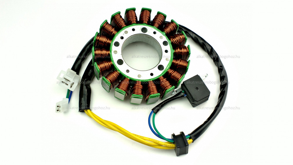 Külső átmérő 104mm Vastagság 27mm Közepén lévő furat átmérője 41.8mm Vezetékek száma 5db ( 3db sárga 1 csatlakozóban + zöld és kék-fehér a másik csatlakozóban) YAMAHA X-MAX 250 YAMAHA YP 250 2005-2016