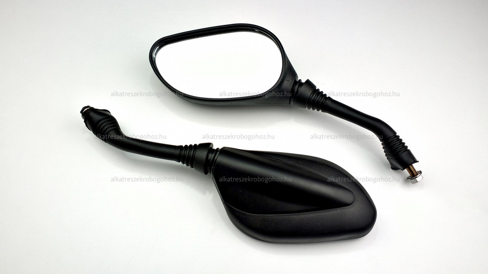 Tükör teljes hossza a szárával együtt 305mm Tükörlap mérete a legszélesebb pontoknál mérve 137mm x 80mm Szár hossza: 152mm Menetméret: M8x1.25 Menet iránya: jobbos + jobbos (mindkét tükör befogatása az óra járásával megegyező irányba történik) Típus: Univerzális visszapillantó tükör Anyag: Műanyag ház, fém tükörszár Jóváhagyási jel: E13 (megfelel az európai