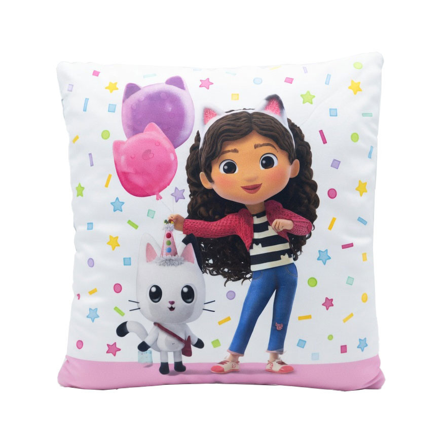 Gabi babaháza Confetti párna, díszpárna 40x40 cm Gabby's Dollhouse, Gabi babaháza párna, díszpárna Mindkét oldalon más minta. Töltött. Anyaga: 100% poliészter Mérete: 40x40 cm