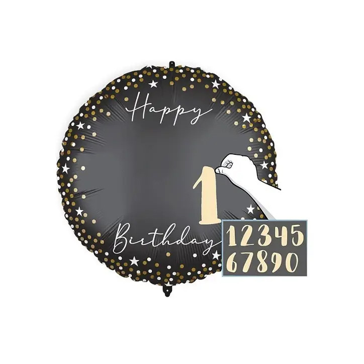 Happy Birthday Black Milestone fólia lufi 46 cm személyre szabható Happy Birthday fólia lufi 46 cm Személyre szabható! Fólia léggömb, mely héliummal vagy levegővel tölthető. A lufi önzárószeleppel van ellátva, amely megakadályozza a gáz elszökését. Méret: 46 cm Anyaga: fólia A lufi tartó pálca + csésze külön megvásárolható áruházunkban.