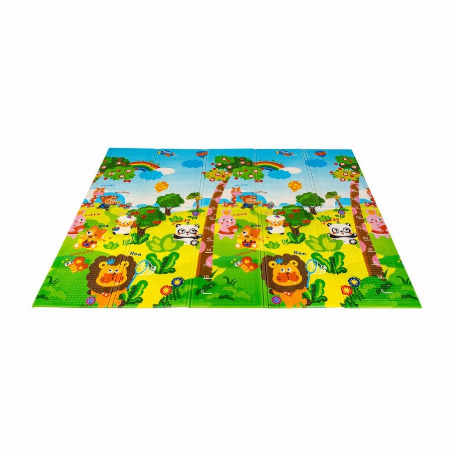 Szivacs játszószõnyeg 180x200cm Forest A kétoldalú összehajtható szõnyeg színes és változatos mintákat és textúrákat kínál, amelyek segítik fejleszteni a babák látását és tapintását. Tele van állatok képeivel, amelyek támogatják a legfiatalabb felhasználók intellektuális és motoros fejlõdését. A szivacs szõnyeg nagy elõnye, hogy könnyen tisztítható. Nedves