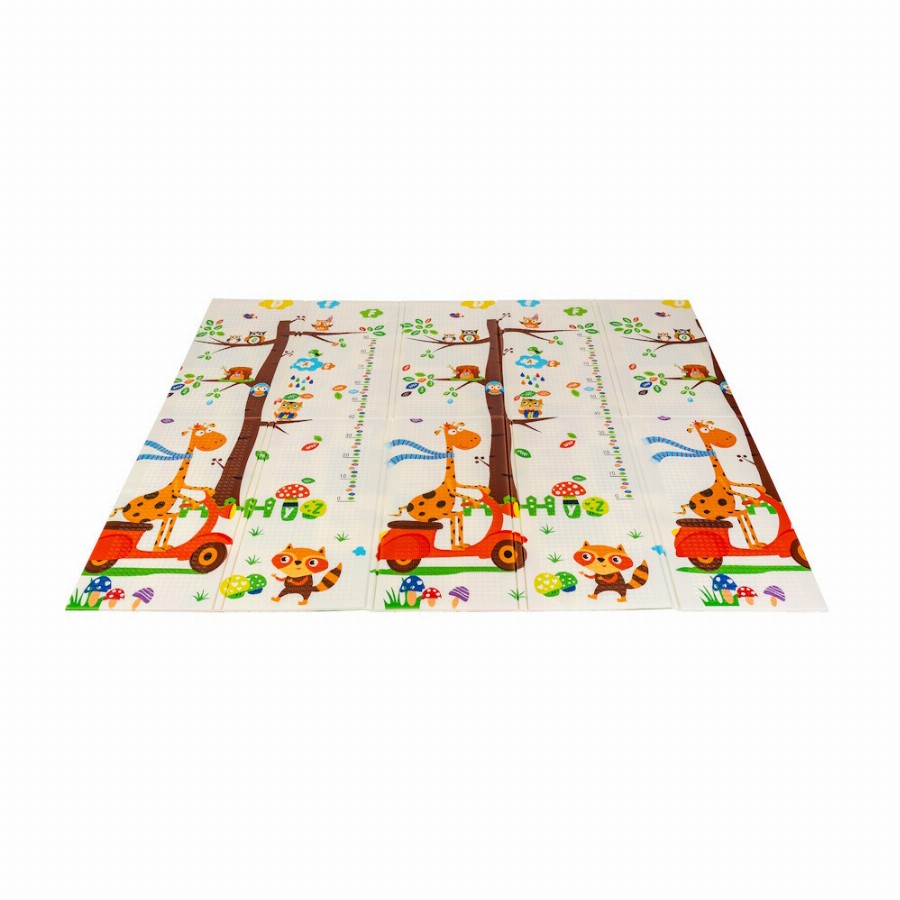 Szivacs játszószõnyeg 180x200cm Giraffe A kétoldalú összehajtható szõnyeg színes és változatos mintákat és textúrákat kínál, amelyek segítik fejleszteni a babák látását és tapintását. Tele van állatok képeivel, amelyek támogatják a legfiatalabb felhasználók intellektuális és motoros fejlõdését. A szivacs szõnyeg nagy elõnye, hogy könnyen tisztítható. Nedves