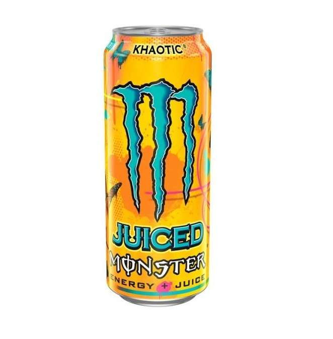 Monster Energy Juiced Khaotic energiaital Űrtartalom: 500ml Narancsos-citrusos ízvilág Összetevők: szénsavas víz, sűrítményből készült gyümölcslé (10% alma, narancs, őszibarack, mandarin, fehér szőlő, ananász), cukor, glükózszirup, aromák, taurin (0,4%), étkezési savak (citromsav, almasav), savanyúságot szabályozó anyagok (nátrium-citrátok, kálium-citrátok), ginze