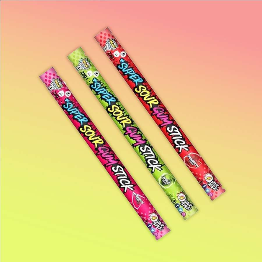 Brain Blasterz Super sour gum stick savanyú rágós cukorka. töltőtömeg: 22g ízek: alma, eper és görögdinnye a cukorka ízei nem válaszhatóak, véletlenszerűen kerülnek feladásra Összetevők: Cukor, gumialap, kukoricakeményítő-szirup, savanyúságot szabályozó anyag (E330), dextróz, emulgeálószerek (E420, E422), aroma, kókuszolaj, színezékek (E141, E162). Átlagos tápért