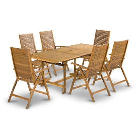 Szett tartalma: 2 db - FDZN 4001-T állítható szék 2db FIELDMANN 1 db - FDZN 4006-T Háromüléses pad FIELDMANN 1 db - FDZN 4004-T Kerti Asztal FIELDMANN FDZN 4001-T állítható szék 2db FIELDMANN • Kerti szék • Méret: 71 x 56 x 108 cm • Anyag: trópusi akácfa • Maximális terhelhetőség: 110 kg • Kialakítás: magasított háttámla, karfás • Dönthetőség: 5 pozícióban
