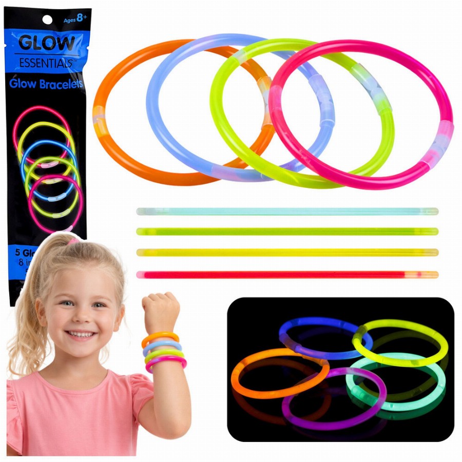 Glow in the Dark Neon Stick Fluorescent Bracelets Wristbands 5 pcs. GLOW STICK BRACELETS SET OF 5 NEON 20 CMThis set of five glow stick bracelets is the perfect accessory for parties, festivals, and outdoor events. Activated by bending the sticks, the product emits an intense neon light visible in the dark, without the need for batteries. This is a quick and convenient solution that allows you to