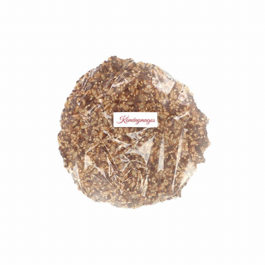Egyedi, kézzel készített csak természetes alapanyagokat tartalmazó, egészséges, reform, prémium élelmiszerÖsszetevők: magvak 82% (napraforgómag, teljes kiőrlésű rozstöret, lenmag, szezámmag), ivóvíz, étkezési só, köménymag 0,3%ALLERGÉNEK A TERMÉKBEN:rozstöret, szezámmagÁtlagos tápérték 100g termékben:Energia 442 kcal