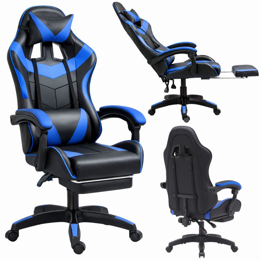 LEAN Swivel Office Gaming Chair with Footrest and Cushion, Black and Blue LEAN GAMING CHAIR, BLACK AND BLUE, SWIVEL OFFICE CHAIR WITH FOOTRESTThe LEAN gaming chair in black and blue is a perfect combination of comfort, ergonomics, and modern design, designed for those who spend long hours in front of a computer. It's ideal for intense gaming sessions, office work, studying, or everyday use at home