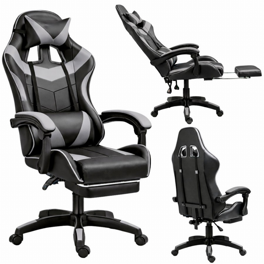 LEAN Swivel Office Gaming Chair with Footrest and Cushions Black and Gray LEAN GAMING CHAIR BLACK AND GRAY SWIVEL OFFICE CHAIR WITH FOOTRESTThe LEAN gaming chair in black and gray is a perfect combination of comfort, ergonomics, and modern design, designed for those who spend long hours in front of a computer. It's ideal for intense gaming sessions, office work, studying, or everyday use at home.T