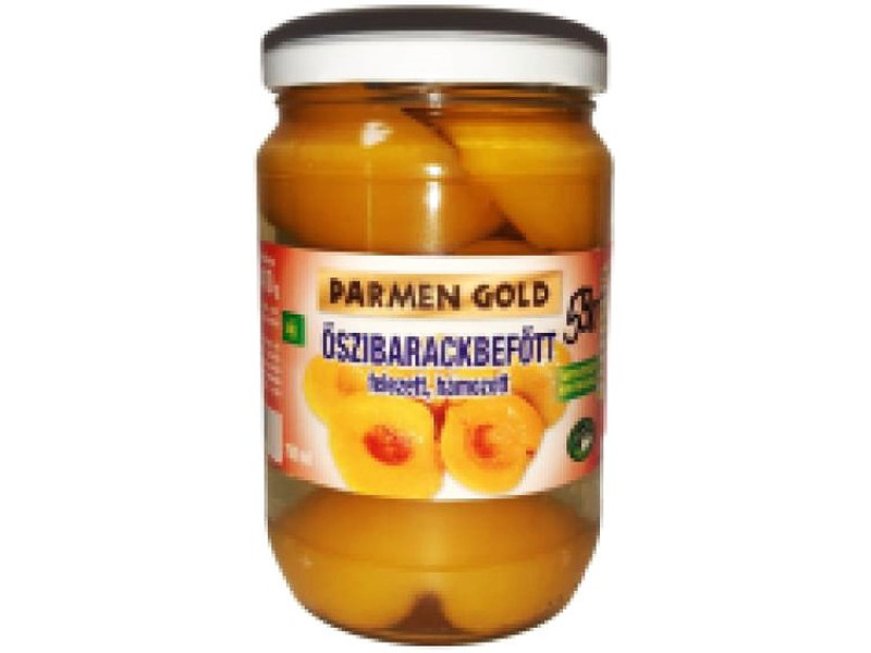 Parmen Gold Őszibarack befőtt – 720 ml Termékleírás Az Parmen Gold Őszibarack befőtt egy kiváló minőségű, 720 ml-es üvegben érkező desszert-összetevő, amelyben érett őszibarack-darabok és finom szirup találhatók. Gondosan kiválasztott gyümölcsökből készült, amely minden falatban a nyár ízét idézi. Kiemelkedő tulajdonságok Valódi gyümölcsdarabok az azonnal fe