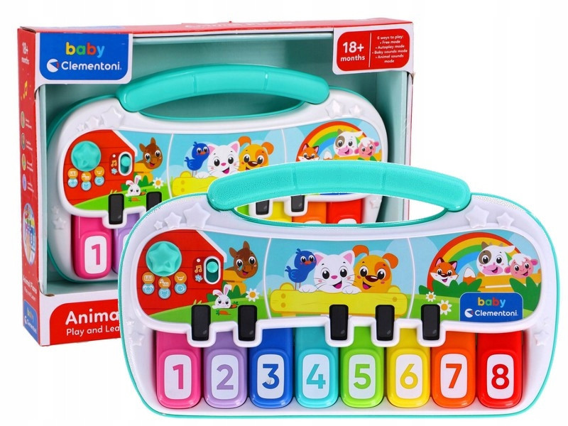 Állatos Farm zongora Clementoni Animals, Állatos zongora Clementoni Doboz mérete: 29x22 cm Tartalma: - bevezeti a gyerekeket a zene világába - 6 módban 8 hang játszható le, hanggal vagy 3 aranyos állat megszemélyesítésével - 4 híres dallam színkombinációja a hátoldalon - 18 hónapos kortól ajánlott!