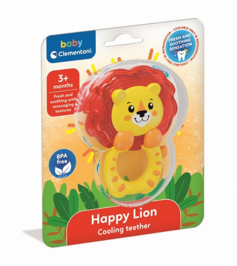 Oroszlán Happy hűsítő rágóka Clementoni Lion, Oroszlán hűsítő rágóka Clementoni Méret: 18x15 cm - műanyag - Ínymasszírozó rágóka a fogzás okozta fájdalom enyhítésére -BPA mentes - 3 hónapos kortól
