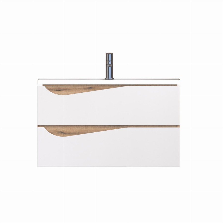 Piramida EURIDIKA fali fürdőszobabútor - műmárvány mosdóval -2 fiókos - ALPINFEHÉR-TÖLGY - 70 x 41 x 56 cm