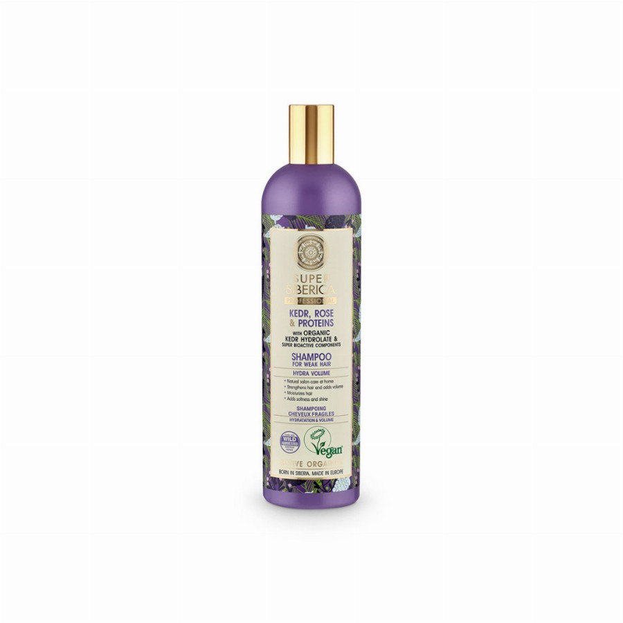 A sampon alapját bio Szibériaicédrus-virágvíz adja. Finoman tisztít, hidratál, energetizál és gondoskodik a gyenge hajról, gazdag fényt és volument adhat. Bio Dauriai rózsakivonat simává és selymessé teszi a haj teljes hosszát. Hidrolizált protein erősít, kisimít, vad borókakivonat, B5 provitamin és hialuronsav mélyen hidratál. Ragyogó fényt és volument biztosíthat ha