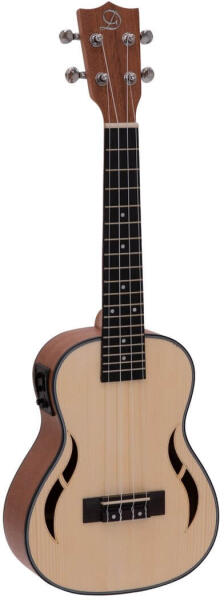 Műszaki adatok: - Koncert ukulele hangszedővel - Elem: 2 x gombelem 3,0 V CR2032 lítium-mangán lítiumcellás, tartozék. - Hangszedő: 1 x Piezo - Előerősítővel és hangolóval - Nyak: Gaboon, - Fogólap: diófa 18 bundos - Test: sapelli - Mérethossz: 375mm - Nut szélesség: 35mm - Híd: Diófa - Szabályozó: 1 x hangerő, - Hangszínszabályzó: 3 sávos hangszínszabályzó - Csatlak